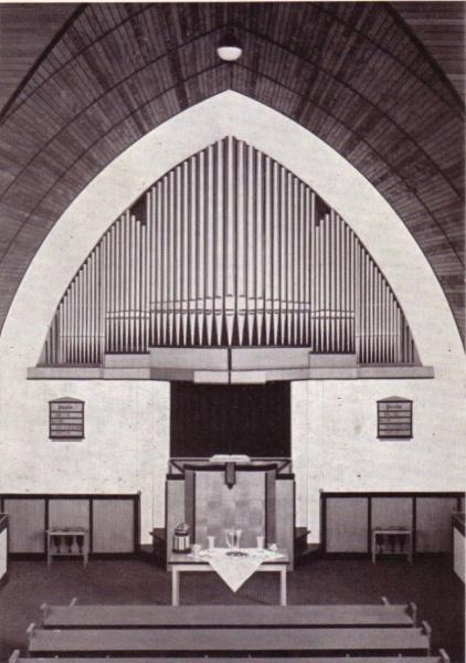 Het interieur in 1952 - het orgel is verplaatst naar de overzijde