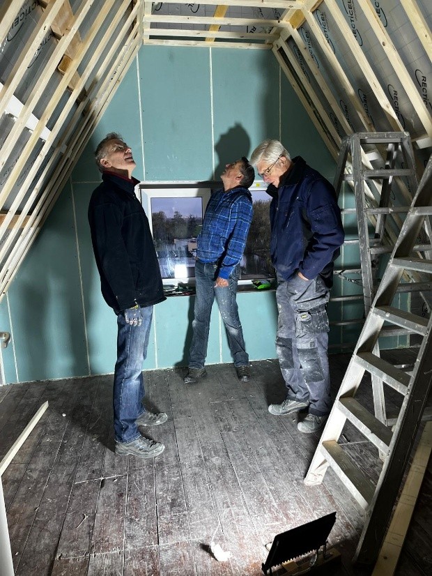 De meeste werkzaamheden verrichten wij zelf. Het project staat onder leiding van een gepensioneerde aannemer en bijna alle vrijwilligers zijn met pensioen en zijn gewend met hun handen/in de bouw te werken. Behalve dat het sociaal gezien een heerlijke klus is, scheelt dit voor de kerk heel veel geld! Er wordt niet bespaard op materiaal maar dus wel op mankracht. En waar nodig huren we een professioneel in. Zo hopen we met elkaar het project tot een mooi einde te maken en hopen we dat de nieuwe bewoners ervan gaan genieten!